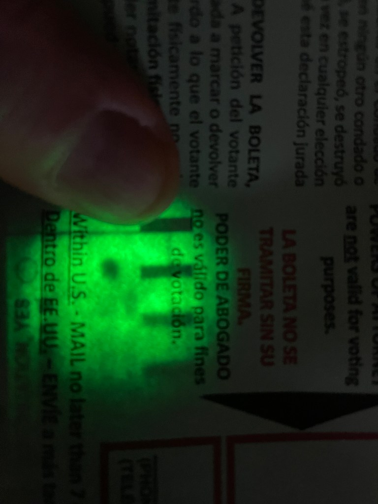 This election is not only off-cycle — so turnout will be dominated by special interests like the teachers’ association — it is all absentee. The Recorder is mailing ballots to everyone even if they are not on the PEVL. We have many reports of multiple ballots received. (See the neighboring post on the PEVL.) It has been possible to put ballots in drop boxes since October 6. Most drop boxes are located in school district offices and are monitored by district personnel. If that were not enough, the ballot design makes it possible to read your vote through the sealed envelope with nothing more than a flashlight. (Hat tip to my genius friend Patty Porter, who reported this here.) These people are taking no chances.